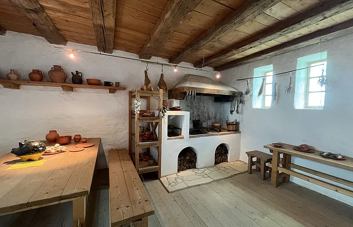Einen Einblick in Haus- und Landwirtschaft ermöglichen die ausgestellten Fundstücke. Römische Esskultur wird lebendig (Mahlstein, Messer, Terra-Sigillata-Geschirr, Vorratsbehälter) ebenso wie die Feldarbeit. Geschirrbeschläge zeugen von der Liebe des "Bauern" zu seinen Pferden. Getreidekörner und Tierknochen lassen einen Blick auf die römische Speisekarte zu.