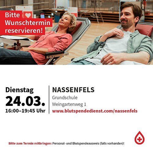 Für kurze Wartezeiten und um einen reibungslosen Ablauf gewährleisten zu können, ist die Online-Reservierung Ihres Termins notwendig. Der Blutspendendienst des Bayerischen Roten Kreuzes freut sich auf Sie!