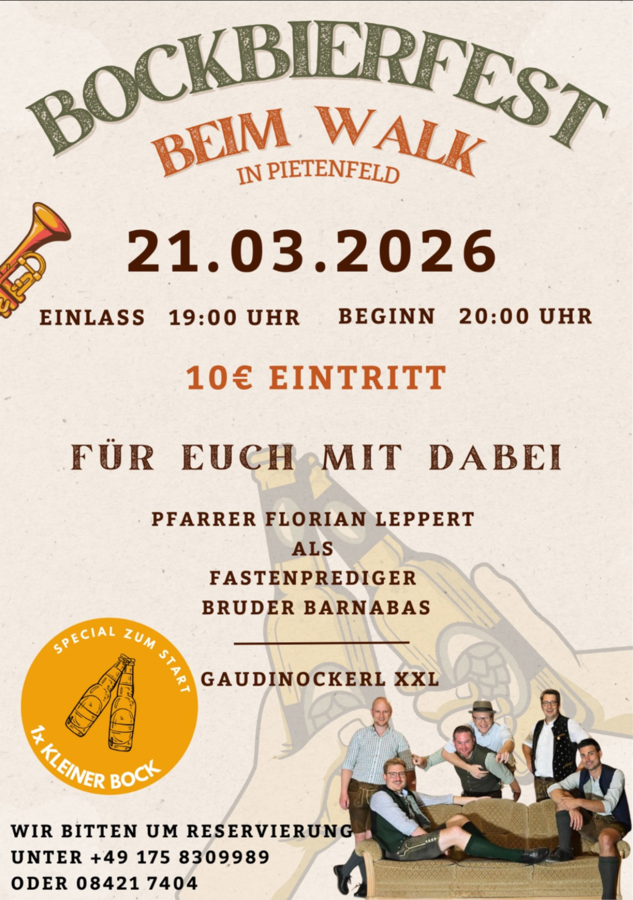 Anmeldung ist erforderlich! Reservierung unter 0175/8309989 oder 08421/7404